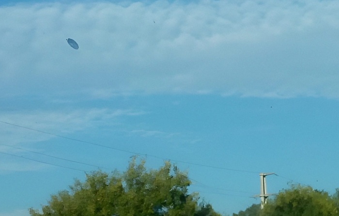 Во время съемки из окна движущегося автомобиля Рина заметила в небе странное темное пятно и сначала она подумала, что это птица, а конкретно черный дрозд. Но когда она начала уже целенаправленно фотографировать этот объект, то пришла к выводу, что это не птица, а скорее "летающая тарелка".