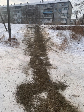 Несанкционированную горку дети раскатали возле дома по ул. Кошурникова, 1. Во дворе расположено овощехранилище, с его возвышения и сделали спуск, который ведет прямо к межквартальному проезду.