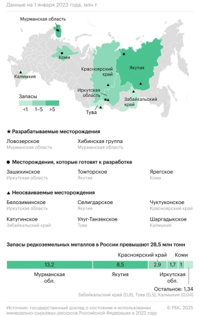 Единственное действующее месторождение в России — Ловозерское в Мурманской области, где добывают руду редкоземельных металлов лопарит (содержит ниобий, тантал, цирконий и другие редкоземельные элементы), рассказал РБК Андрей Тренин, гендиректор АО «Аркминерал-Ресурс».Эта компания разрабатывает еще одно из перспективных редкометалльных месторождений —Африкандское. Оно комплексное: основным продуктом добычи будет диоксид титана, а попутно будут извлекаться ниобий, тантал и редкоземельные элементы. Запасы месторождения состояли на государственном балансе до 1972 года: более 50 млн т диоксида титана, 300 тыс. т ниобия и 860 тыс. т тантала. Сейчас завершается геологическое изучение, уточняет Тренин, по итогам которого запасы будут уточнены и вновь поставлены на баланс.