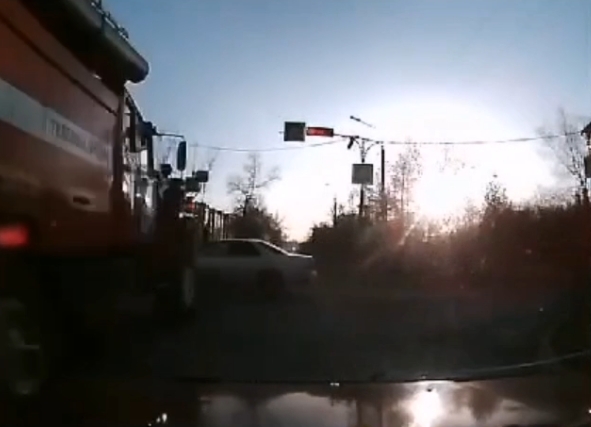 В Черногорске в жестком ДТП погибла женщина. По предварительной версии Госавтоинспекции, она не пропустила пожарный автомобиль на перекрестке. Момент ДТП попал на видео.
