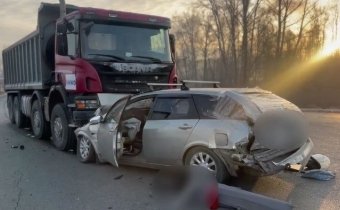Утром Nissan замяло под грузовик на дамбе в микрорайоне Полярный.