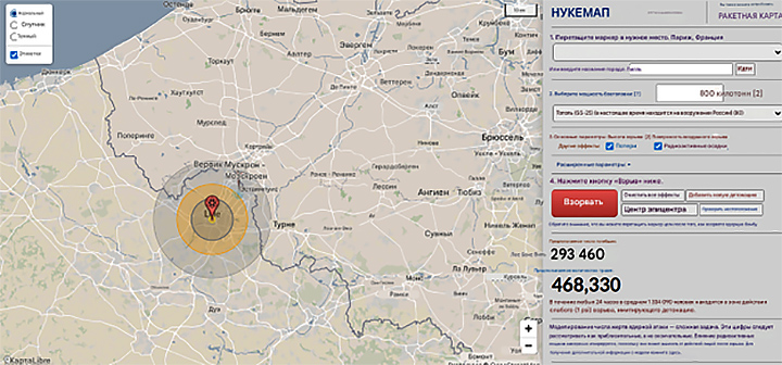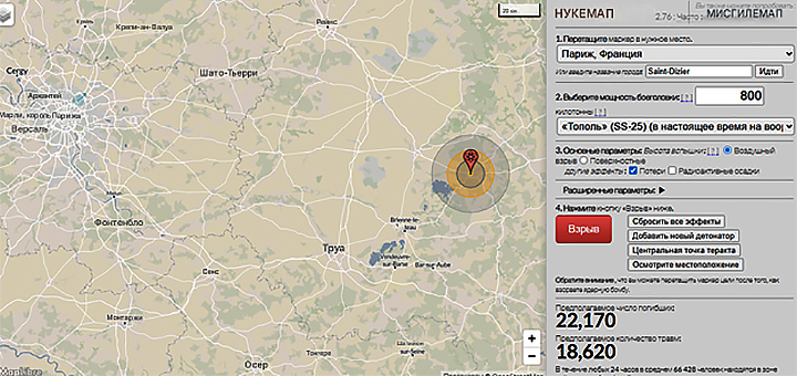 В значительно урбанизированной Франции нет никаких проблем найти город, соответствующий по размеру, количеству населения и значению любому из наших городов. Источник: nuclearsecrecy.com/nukemap (автоперевод)
