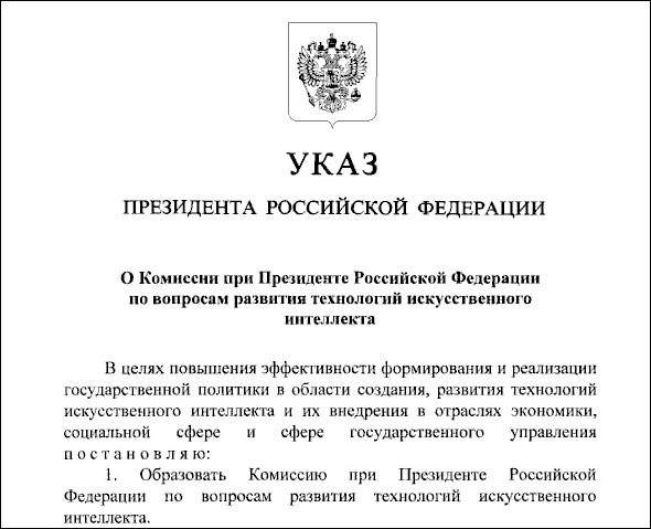 Владимир Путин подписал указ о формировании комиссии по развитию ИИ. Скриншот: publication.gov.ru