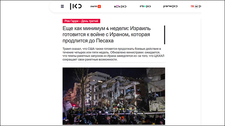 Высокопоставленный израильский чиновник: "Готовы к войне до Песаха". Скриншот страницы газеты KAN