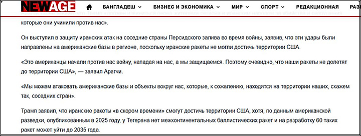Иран не может дотянуться до США, но до американских баз на Ближнем Востоке – вполне. Скриншот: сайт NewAge