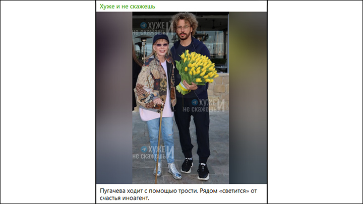 По его словам, Пугачёва страдает "слепотой эмигранта" – оценивает Россию по устаревшим воспоминаниям и полностью оторвалась от реальности. А её спонсоры, по сути, не осознают, что влияние артистки уже давно сошло на нет.