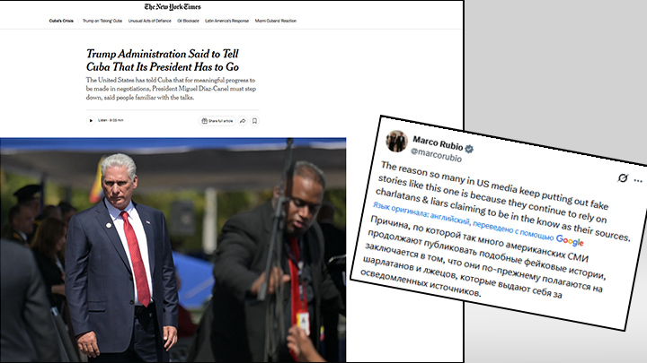 Госсекретарь США Марко Рубио обрушился на публикацию газеты The New York Times, в которой говорится, что администрация Трампа добивается ухода Мигеля Диас-Канеля с поста президента Кубы.