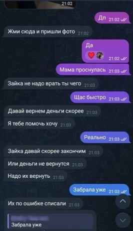 Полицейские предупреждают, что опасно давать детям доступ к телефонам взрослых. В МВД опубликовали скрины переписки аферистов с мошенниками.