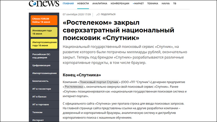 Выходит, что вопросом суверенизации российского интернета надо было заниматься не вчера и не так. Нужно было уже десятки лет назад создавать благоприятный режим для конкурирующих с Западом российских интернет-сервисов, поощрять, чтобы интернет-разработчики не бежали за границу, а оставались в России и создавали свои ресурсы здесь.