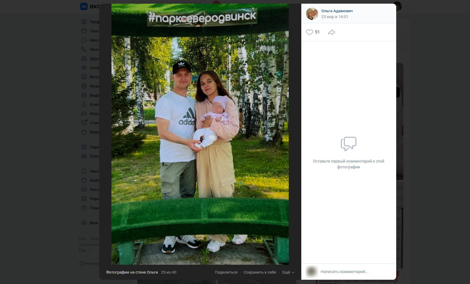 Дочь Ольги Адамович родила ребёнка, когда ей ещё не было 18 лет. Бабушка вырастила и внучку, и её брата. Внучка вышла замуж и тоже родила дочь. Малышку назвали Никой. Отец Ники – участник специальной военной операции. Он погиб в 2024 году. Мать занялась оформлением документов на получение выплат, бегала по инстанциям, для чего приходилось ездить в другой город. Всё это время девочкой сидела её прабабушка Ольга.