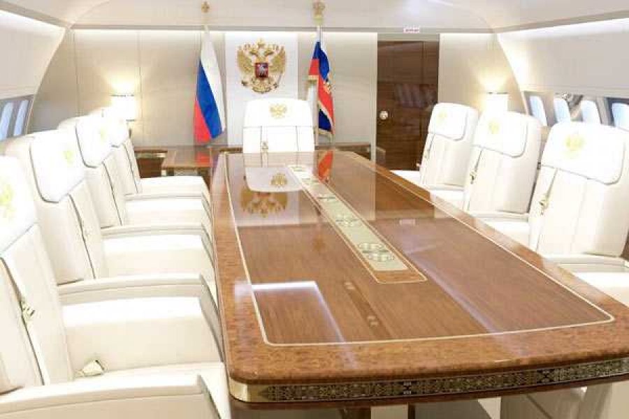Да, на интерьер Борта №1 ушел не один миллион рублей, но роскошным его назвать нельзя. Все максимально практично, но, в то же время, отвечает статусу пассажира и его гостей.