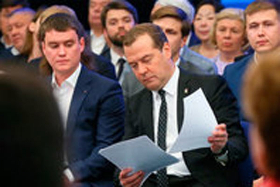Но председатель партии и правительства пожевал губами и завершил: "Поэтому систему информирования, обмена информацией о том, что происходит, в том числе по национальным проектам, нужно сделать, как было раньше принято говорить, снизу и до самого верха".