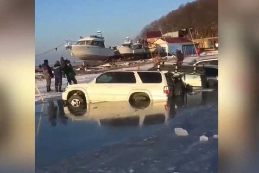Несколько десятков автомобилей утонули в бухте Воевода на о. Русский во Владивостоке. Лед не выдержал многотонного напора. Пострадали около 30 автомобилей.