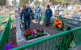 Офицеры Главного управления МЧС возложили цветы к могилам погибших.