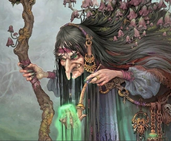 Так, например, в некоторых южнославянских сказках Баба-Яга выступает не как злая лесная старуха, а как степная богатырша, иногда – мать, жена пли сестра убитых богатырями змеев. Царство её находится «за тридевять земель в тридесятом царстве», «за огненной рекой», часто – в подземном мире; дворец ее огорожей тыном, на котором торчат человеческие головы.