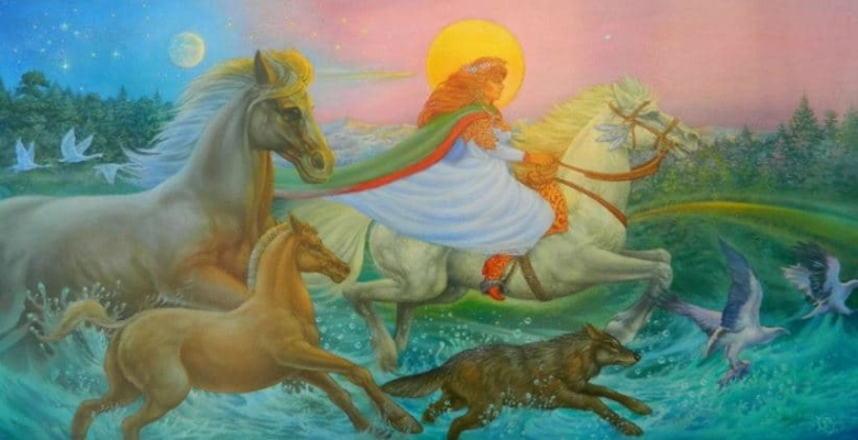 В основу подобных сказок-легенд о воинственной Яге-богатырше, обитающей где-то «за степной рекой среди шелковых трав, у криничной воды возле моря», вероятно, легли сказания о войнах с царством амазонок, живших у Меотиды. Так, например, описания «подземного» царства Яги, среди которого нередко возвышаются горы, были, очевидно, навеяны преданиями о каких-то областях, расположенных за горами, с которых нужно спуститься (как в подземелье) вниз, в долины, населенные воинственными и многочисленными женщинами-всадницами (образ которых нередко замещает традиционный образ Змея), возглавляемыми некой «Царь-Девицей».